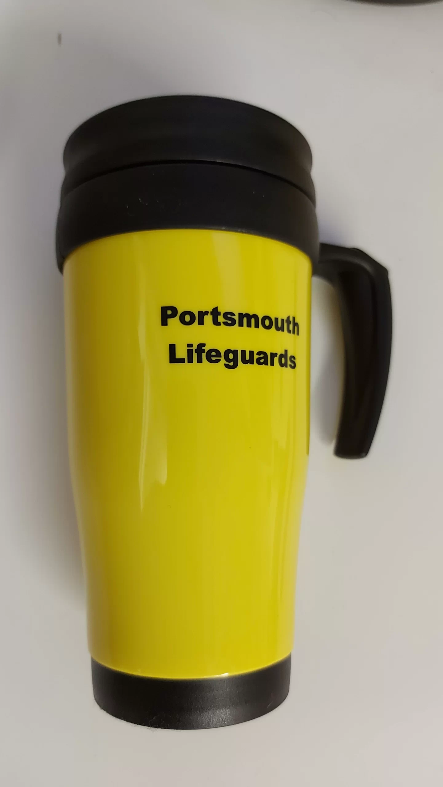 Insulated mug suitable for home, office or travel, this insulated mug comes boxed, ready to keep your hot drink warm or your cold drink cool – You decide! This mug is finished in yellow with Portsmouth Lifeguards written in bold font. Fitted with a secure screw lid to keep your drink contained with an easy drinking flap